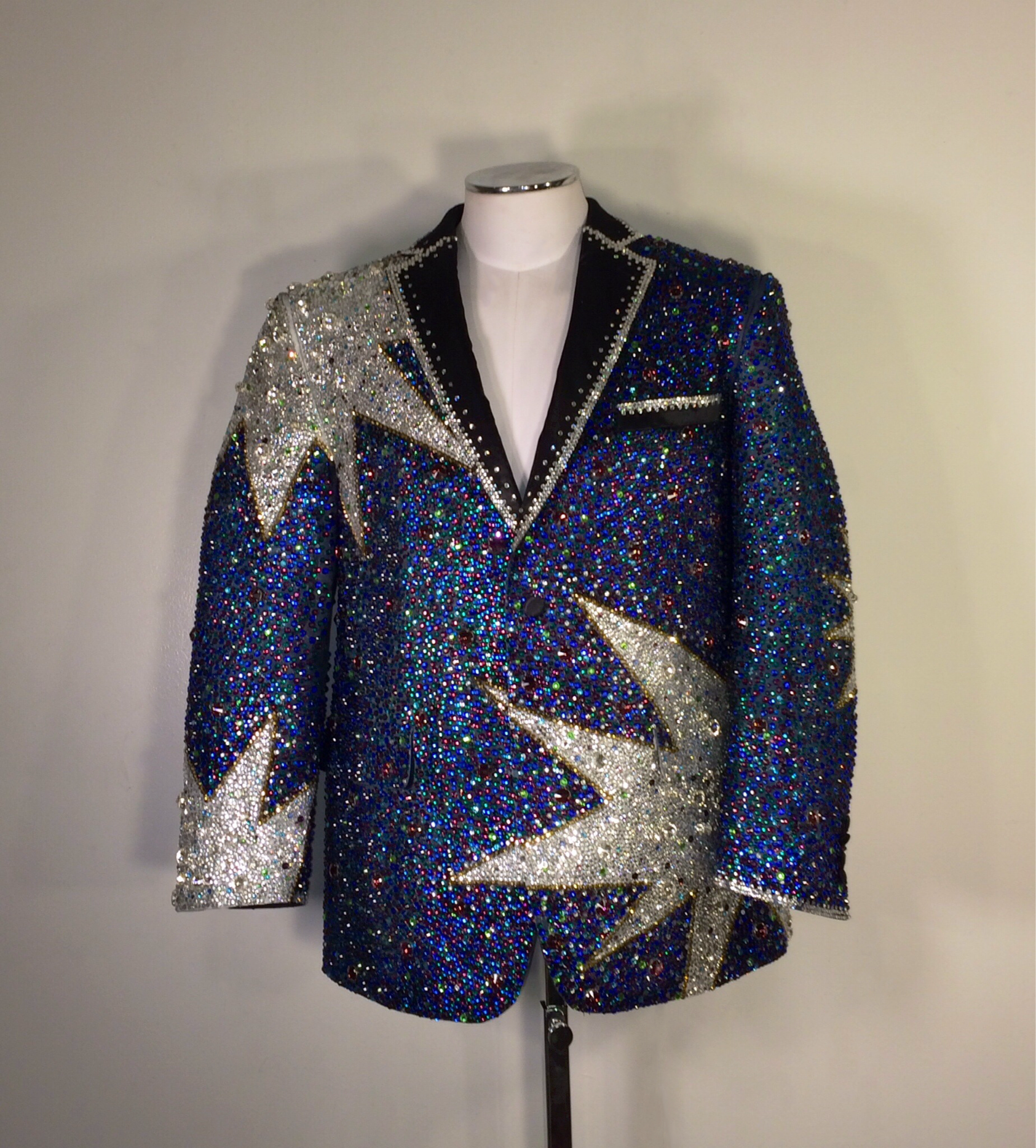 Fully Rhinestoned Men's Tuxedo Jacket in Cool Tones in a Starburst Design